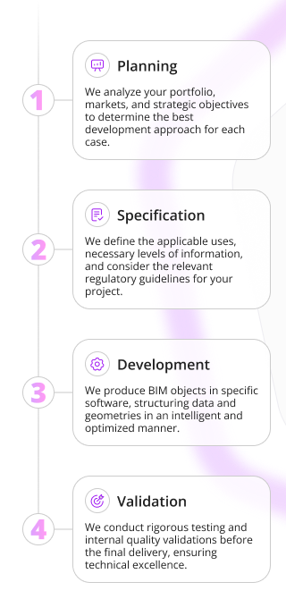 At Blocks, we ensure strategic BIM objects through a meticulous process. We analyze your portfolio, markets, and visions to define the best approach.